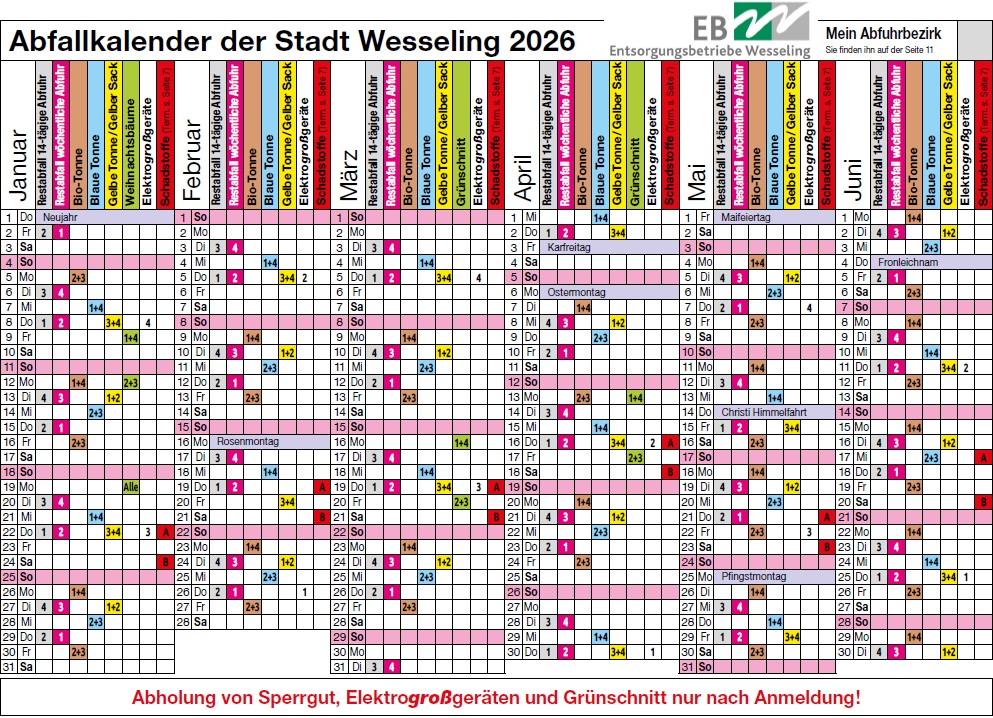 Den kompletten Abfallkalenders der Stadt Wesseling für 2026 finden Sie HIER!