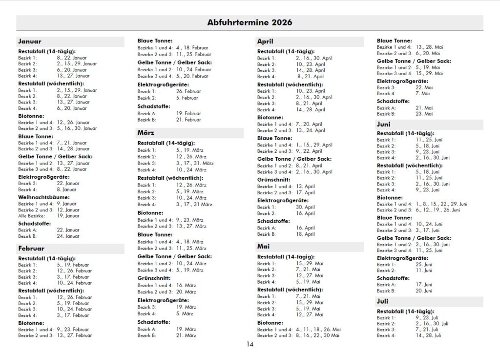 Abfallkalender 2026 jetzt verfügbar