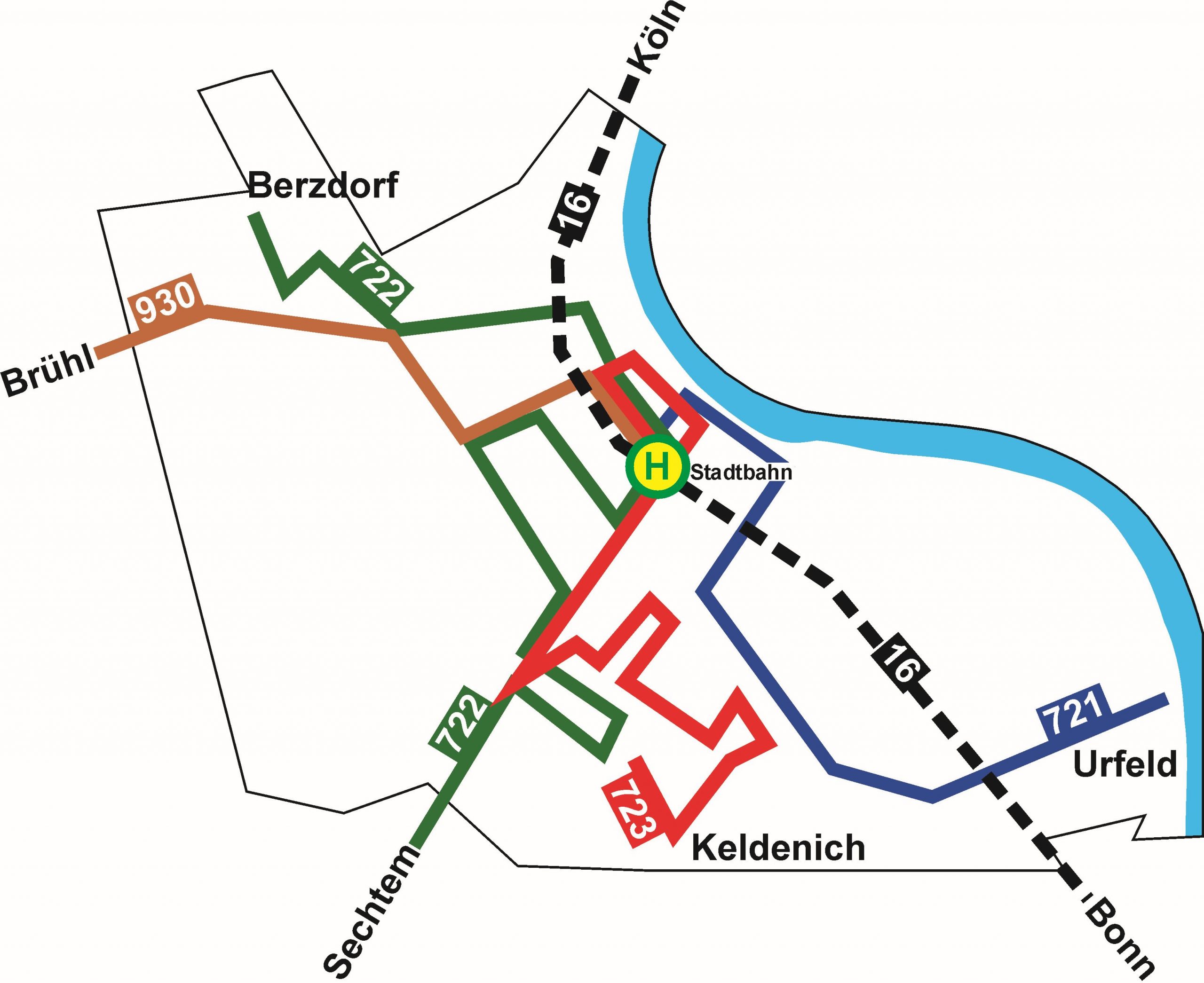 Ebenfalls hinterlegt sind die aktuellen Fahrpläne der Regionalbuslinie 730 der Regionalverkehr Köln GmbH (RVK) und der Regionalbuslinie 930 der Rhein-Erft-Verkehrsgesellschaft mbH (REVG).